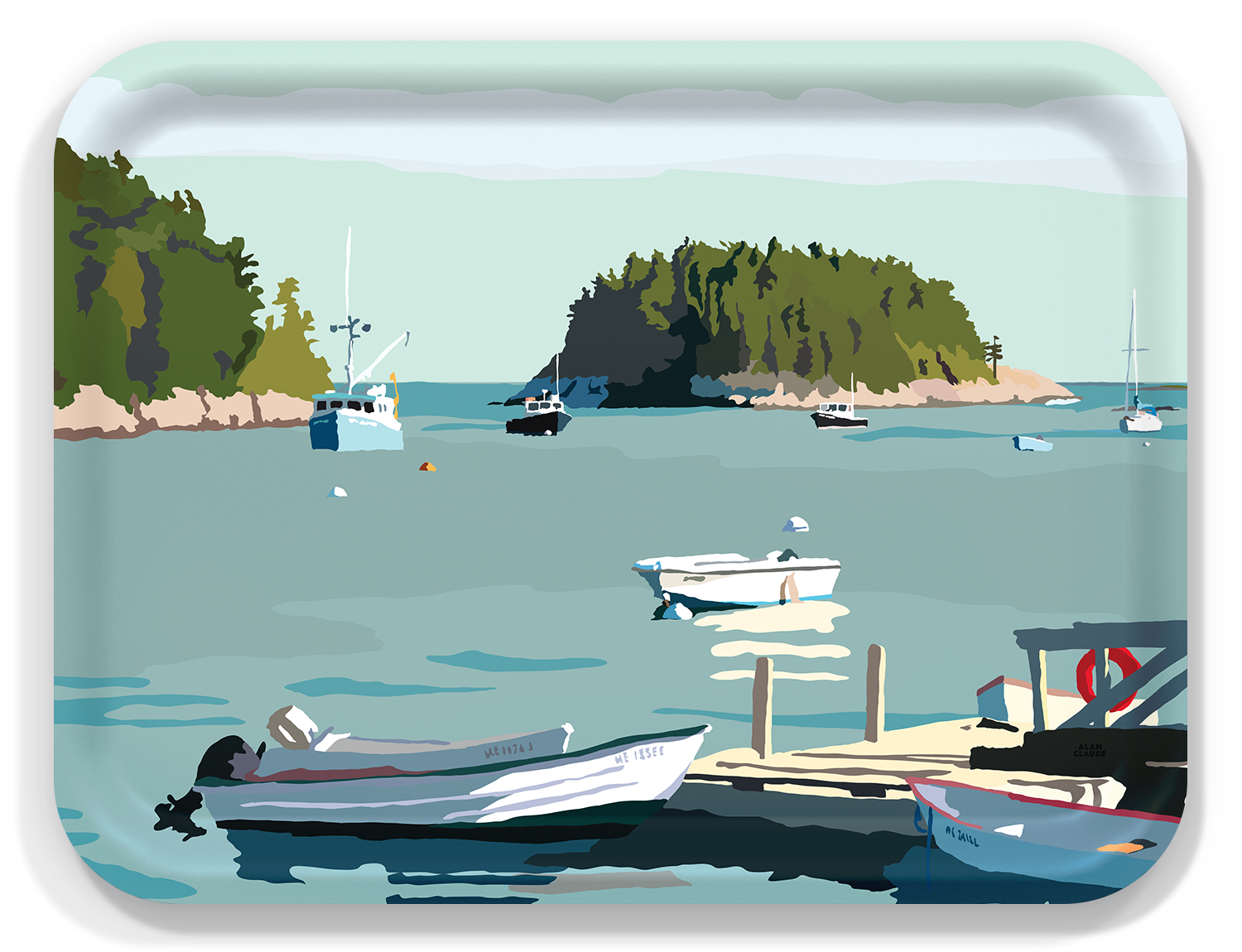 This large decorative wooden serving tray features artwork created by Alan Claude, know for capturing a fresh perspective on idyllic Maine scenes. This 16" x12" tray is handcrafted from birch wood veneer, sourced from certified sustainable forests, and sealed with transparent matte melamine on both sides, ensuring ease of care.