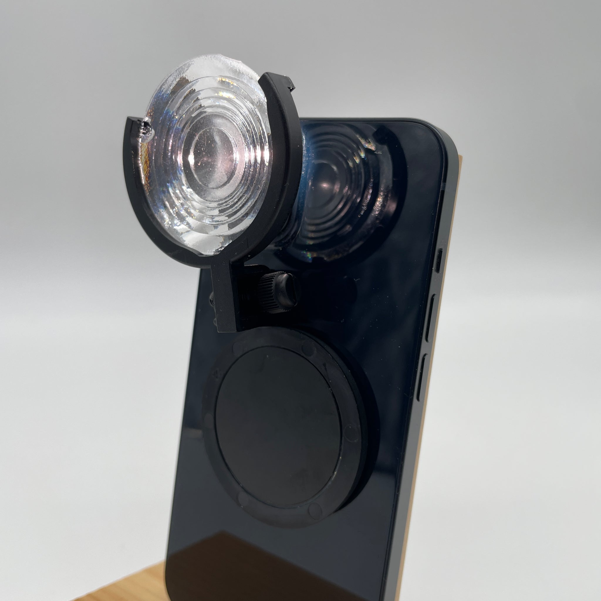 The Pocket Lighthouse is a mobile & smart phone accessory that allows you to harness the magnifying power of a Fresnel lens. Historic lighthouses widely used Fresnel lenses, developed by Augustin-Jean Fresnel in the 1820's, to create powerful, focus beams from a single lamp, revolutionizing maritime navigation by making their light visible for much greater distances. These complex, beehive-like structures use refracting prisms to concentrate light. When you step into the lantern room of our exhibit, Into the Lantern: A Lighthouse Experience, visitors can view the original second-order Fresnel lens from the east tower at Two Lights, Cape Elizabeth, Maine. Turn your phone's flashlight into a magnificent beam of light!